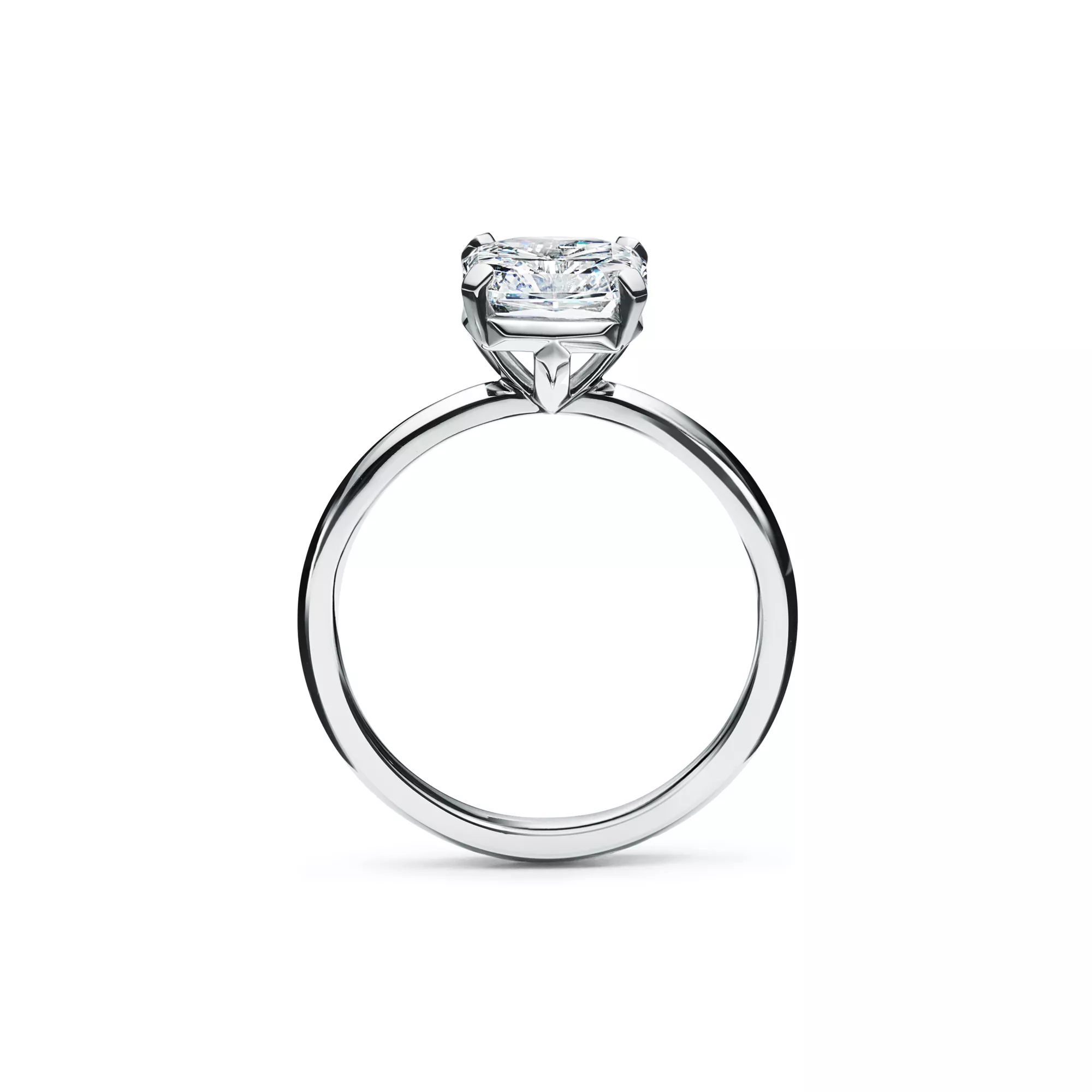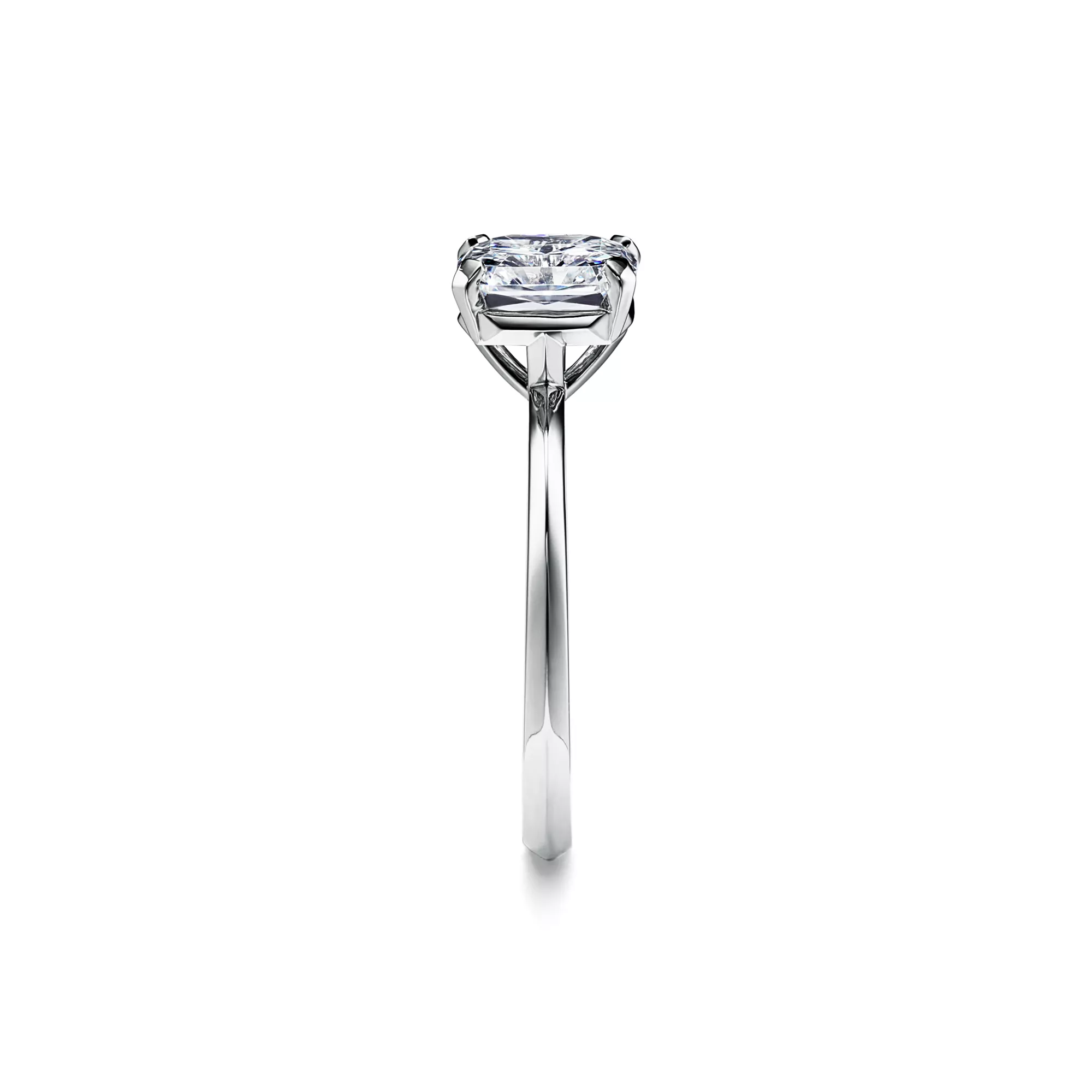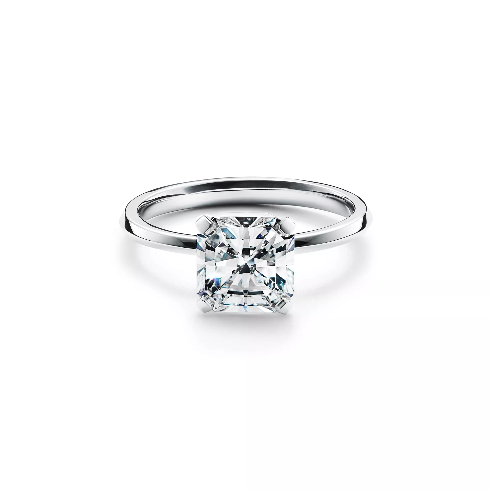 Graphic and geometric with a T-shaped detail in the setting, the Tiffany True® engagement ring is a new icon of modern love. With a refined platinum band and a Tiffany True® diamond, a new square mixed-cut diamond unique to Tiffany, the Tiffany True® engagement ring features clean lines and striking details. At Tiffany, we ethically source our diamonds. Integrity and social responsibility are at the core of our sourcing practices.