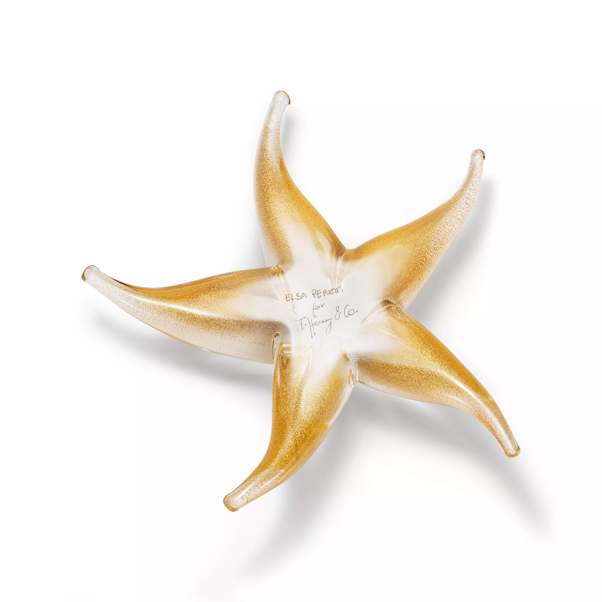 The starfish evokes life beneath the waves and in the celestial heavens. Starfish in handmade, mouth-blown Venetian glass with 24k gold leaf. 8" wide. Original designs copyrighted by the Nando and Elsa Peretti Foundation.