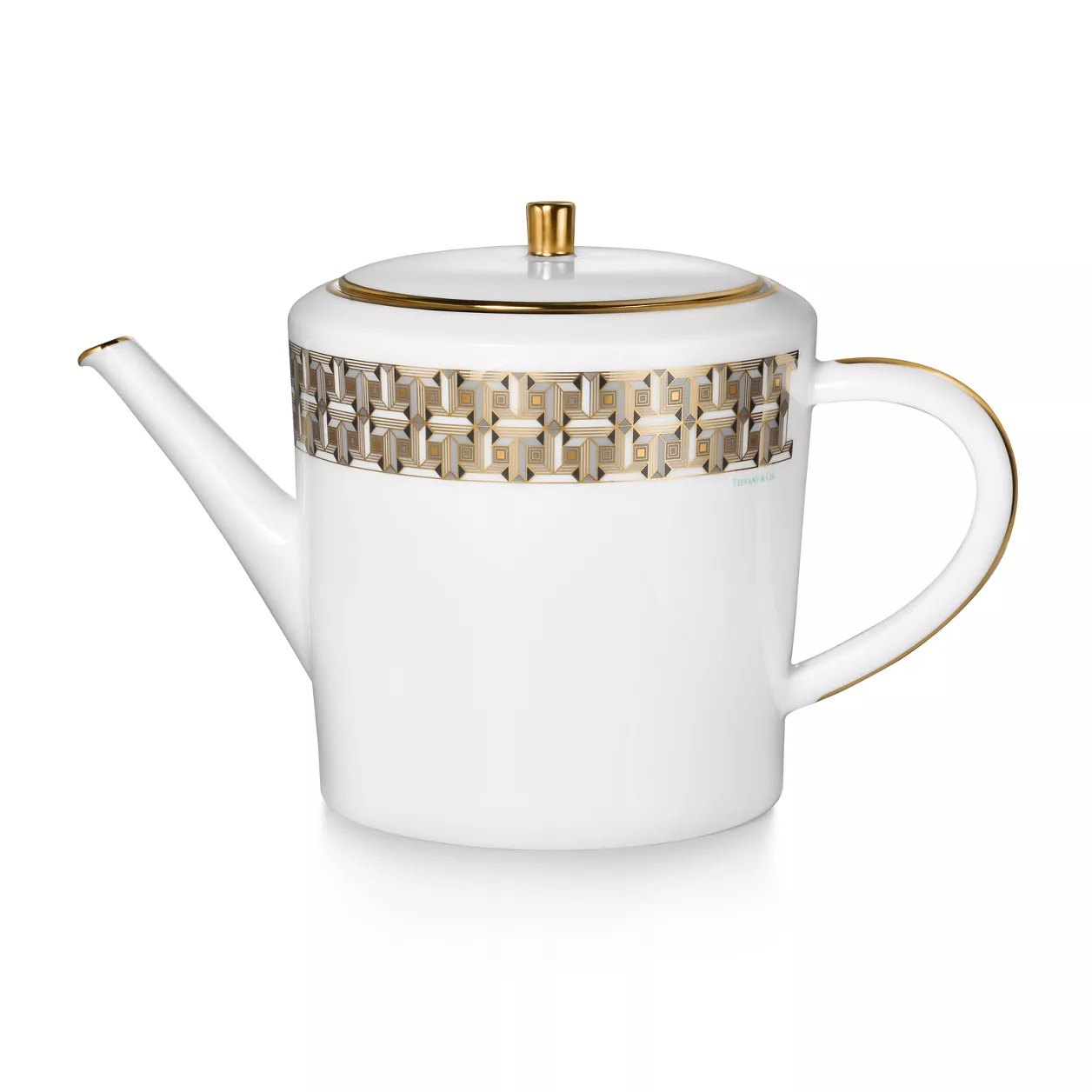 Inspired by the jewellery collection of the same name, Tiffany T True dinnerware brings radiance to the table. Crafted from Limoges porcelain, a geometric interpretation of the Tiffany T True motif adorns this teapot with a hand-painted gold rim. Mix with a Tiffany T True creamer or sugar bowl in different colours for a surprising table setting.