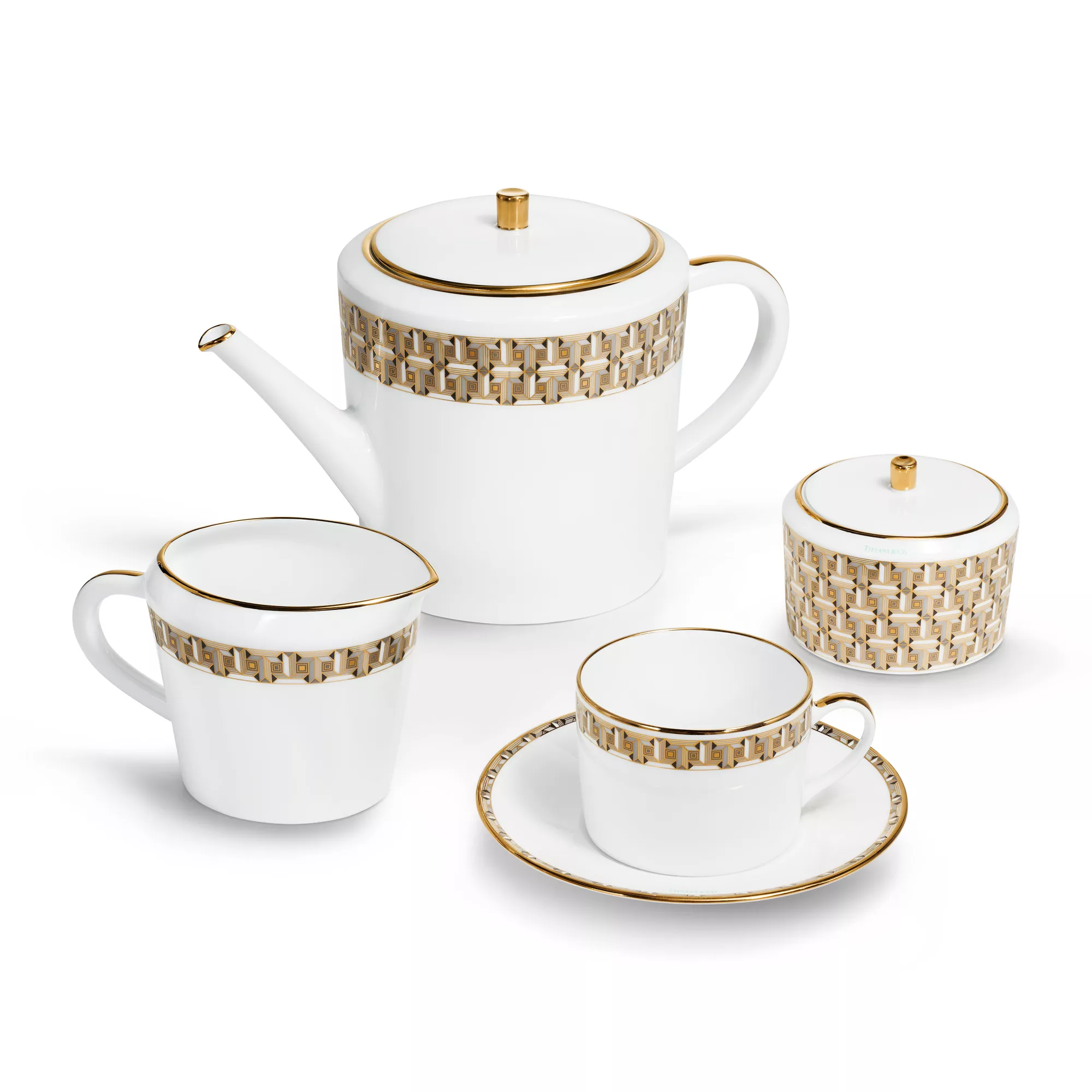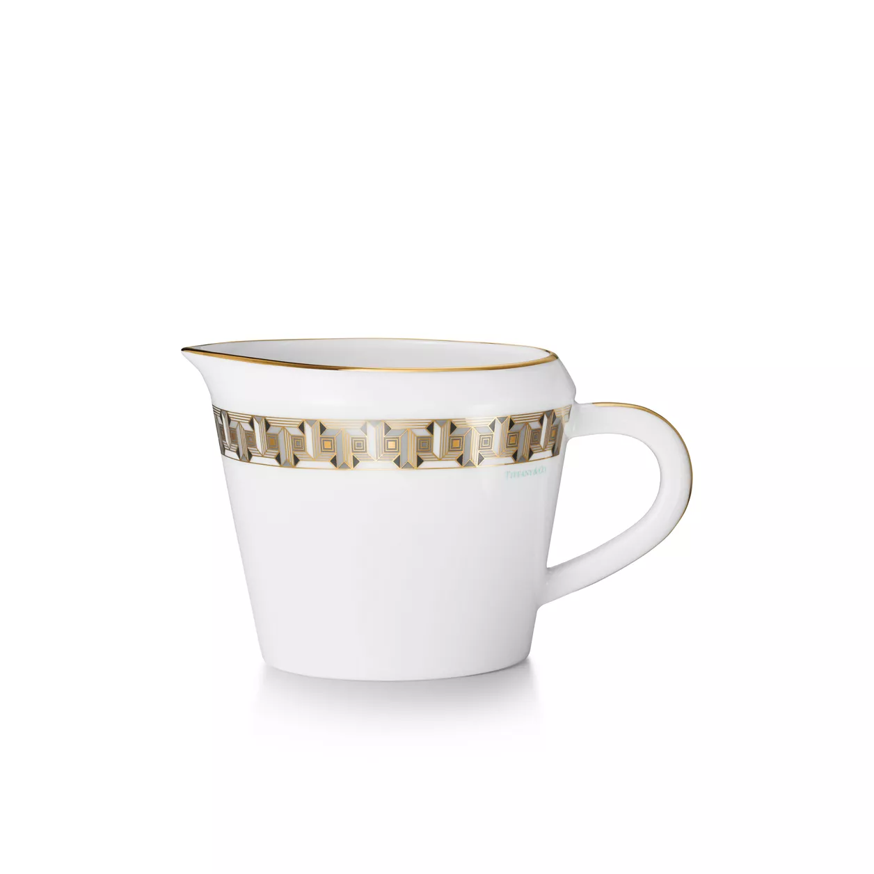 Inspired by the jewellery collection of the same name, Tiffany T True dinnerware brings radiance to the table. Crafted from Limoges porcelain, a geometric interpretation of the Tiffany T True motif adorns this creamer with a hand-painted gold rim. Mix with a Tiffany T True teapot or sugar bowl in different colours for a surprising table setting.
