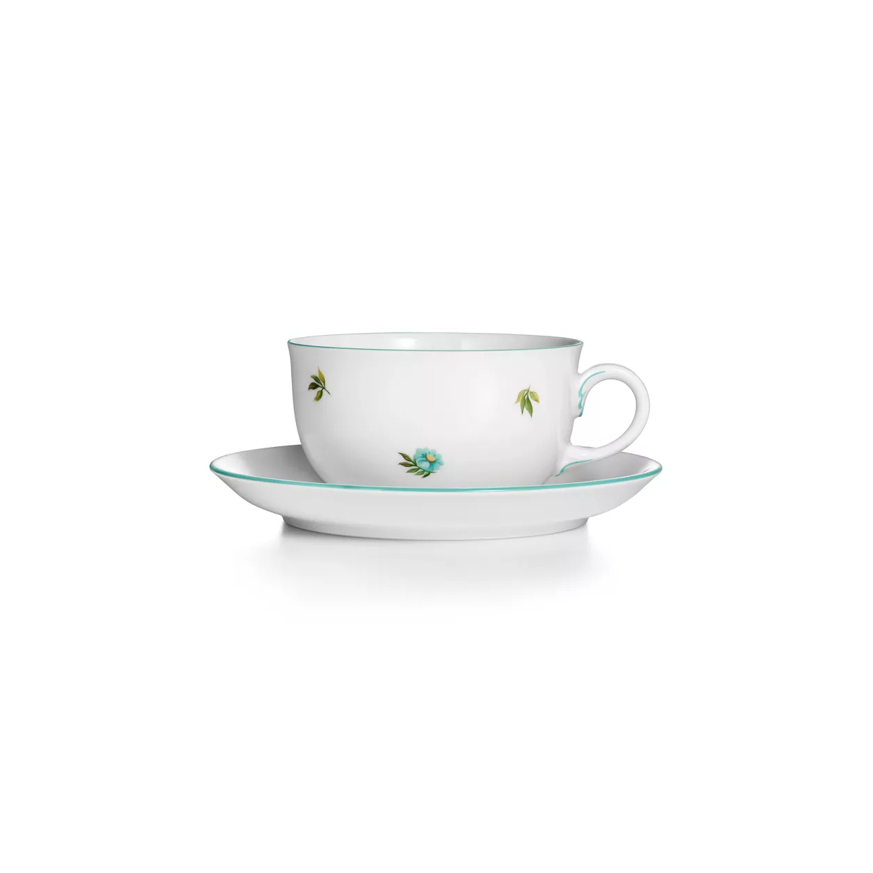 Expertly crafted in fine porcelain, the Tiffany Wildflower collection features a delicate floral motif accented by touches of the House's signature Tiffany Blue™. Hand-painted by artisans at the Vienna Porcelain Manufactory Augarten, this teacup and saucer complements any table setting.