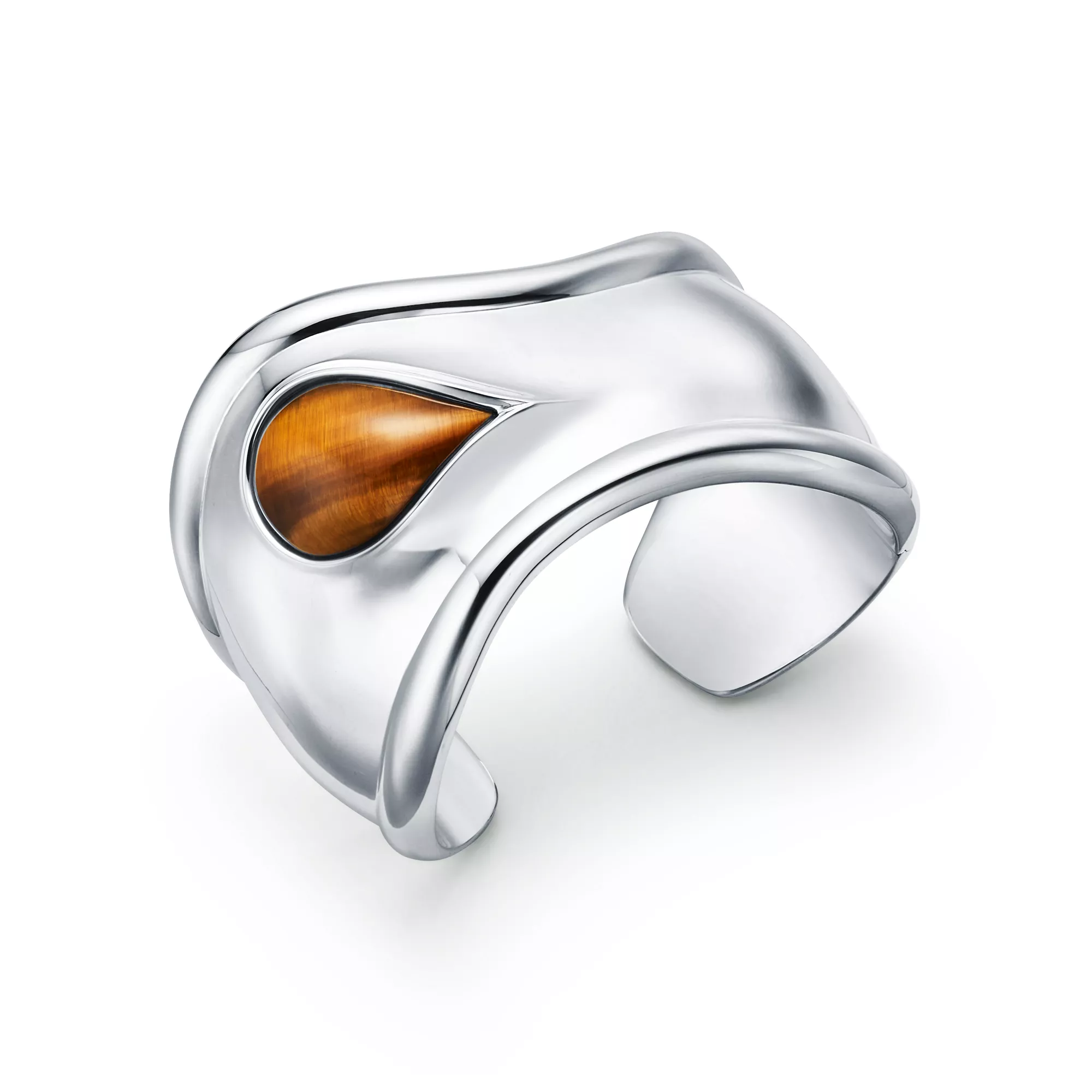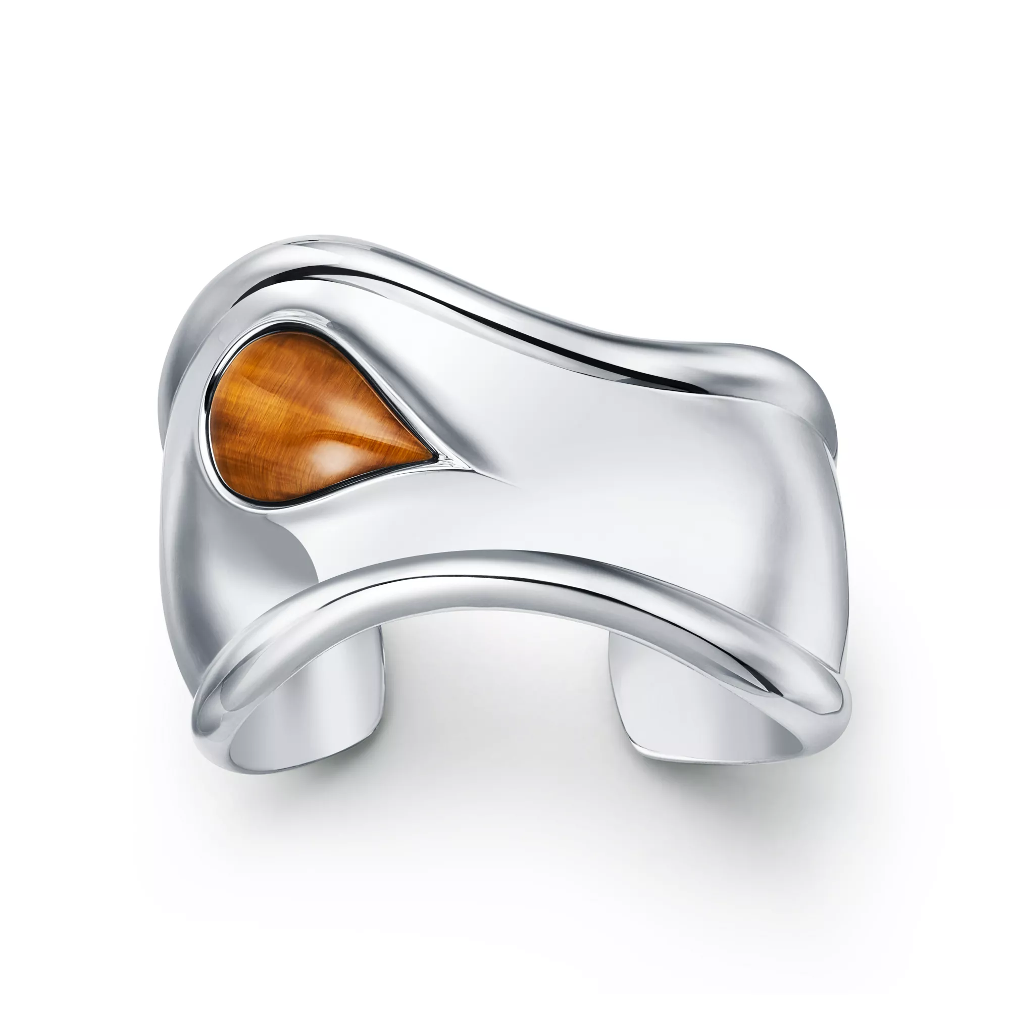 A nod to the sublime beauty found in nature, Elsa Peretti® carved stone Bone cuffs are expertly made by master craftspeople, who hand carved and inlaid each stone. Powerfully feminine with an effortless ease, the groundbreaking Bone cuff design was first introduced in the 1970s. A twist on this iconic design, this sterling silver Bone cuff honours the beauty of the hand-set tiger's eye and reflects the designer's passion for smooth, sculpted surfaces.