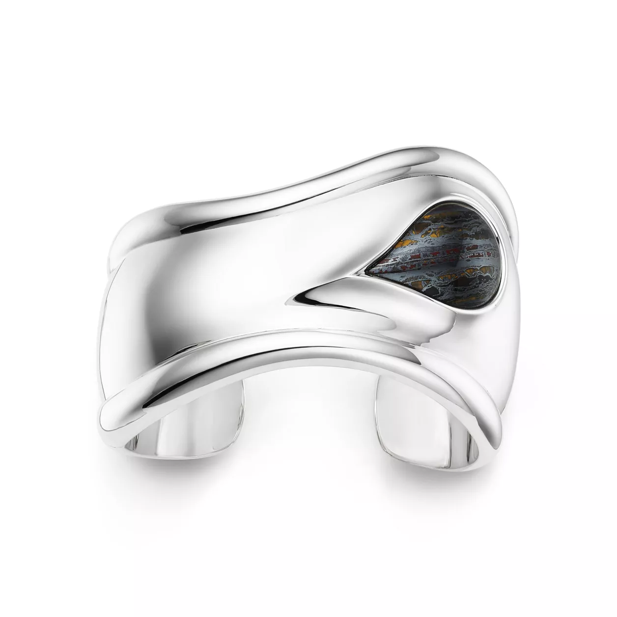 A nod to the sublime beauty found in nature, Elsa Peretti® carved stone Bone cuffs are expertly made by master craftspeople, who hand carve and inlay each stone. Powerfully feminine with an effortless ease, the groundbreaking Bone cuff design was first introduced in the 1970s. A twist on this iconic design, this sterling silver Bone cuff honours the beauty of hand-set tiger iron and reflects the designer's passion for smooth, sculpted surfaces.