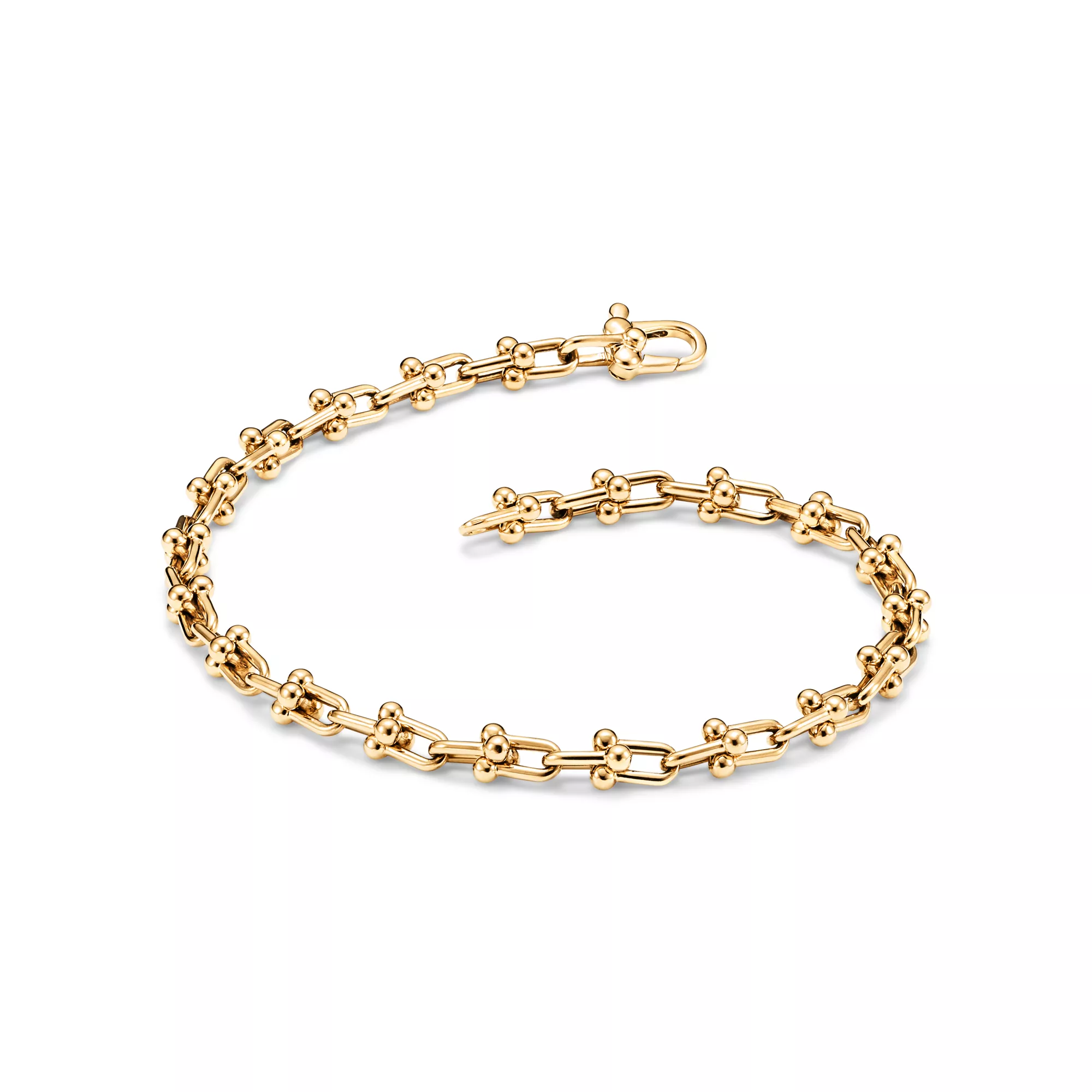 Tiffany HardWear is an expression of love’s transformative strength. Inspired by a quintessential bracelet from 1962 found in the House’s archives, HardWear embodies enduring resilience and uninhibited spirit. The collection's iconic gauge links form this sleek bracelet.