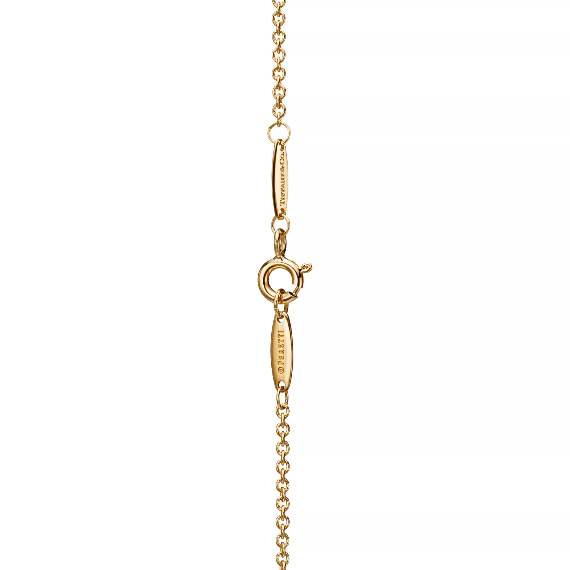 The form is malleable and ergonomic in the way it drapes over the body's contours. Fringe pendant in 18k gold with freshwater cultured pearls. On a 16" chain. Pearls, 2.5-3mm. Original designs copyrighted by the Nando and Elsa Peretti Foundation.