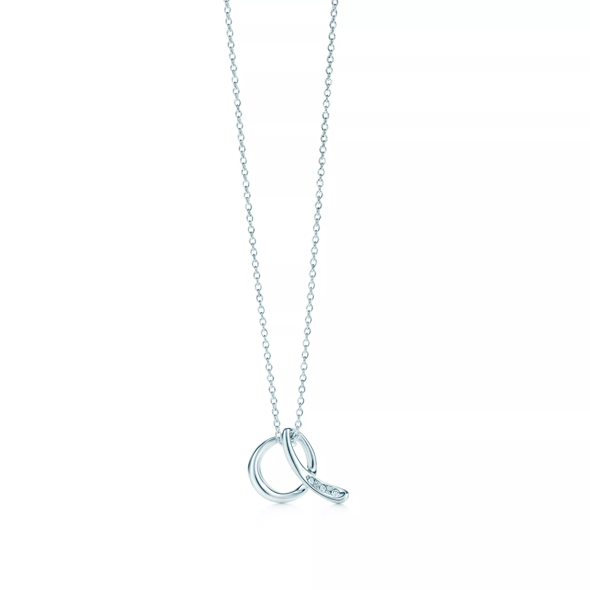 The Elsa Peretti™ Alphabet collection is a personal expression, crafted in the designer's handwriting and inspired by her organic aesthetic. Designed in sterling silver with diamonds, this small Alphabet pendant features an initial on a delicate chain. Wear this piece yourself or give it as a gift to someone you treasure.