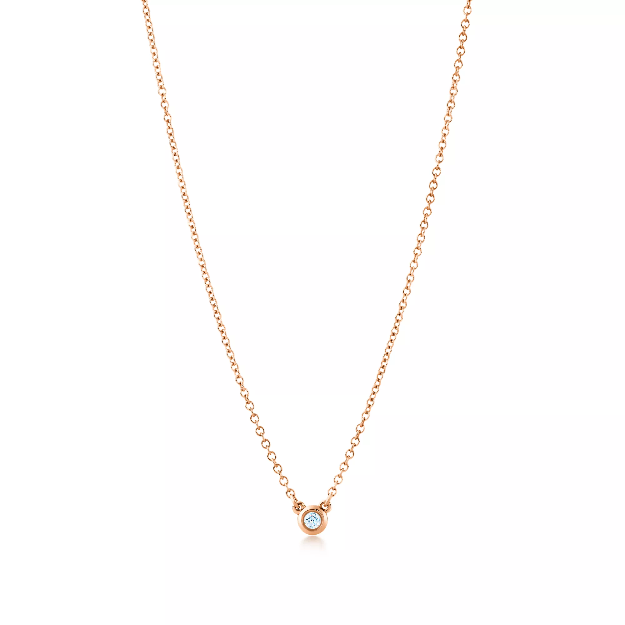 A single hand-polished diamond shines at the centre of this delicate and refined 18k rose gold pendant. Elsa Peretti’s revolutionary Diamonds by the Yard® collection features a combination of fine, fluid chains and bezel-set stones that forever changed the role of diamonds in fashion. Suspended like a single drop of light against the skin, layer this design with other Diamonds by the Yard® pendants and necklaces of varying lengths and metals for a look that’s all your own.