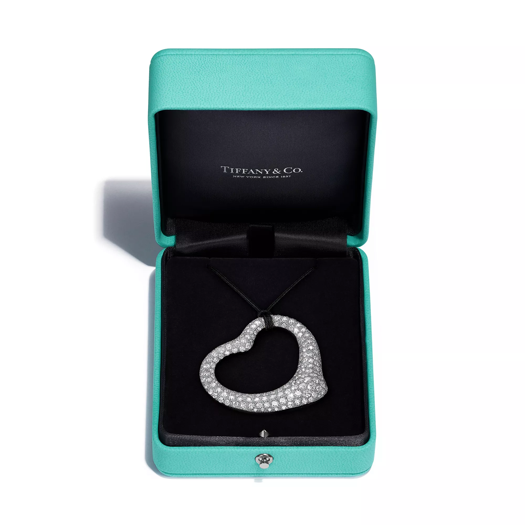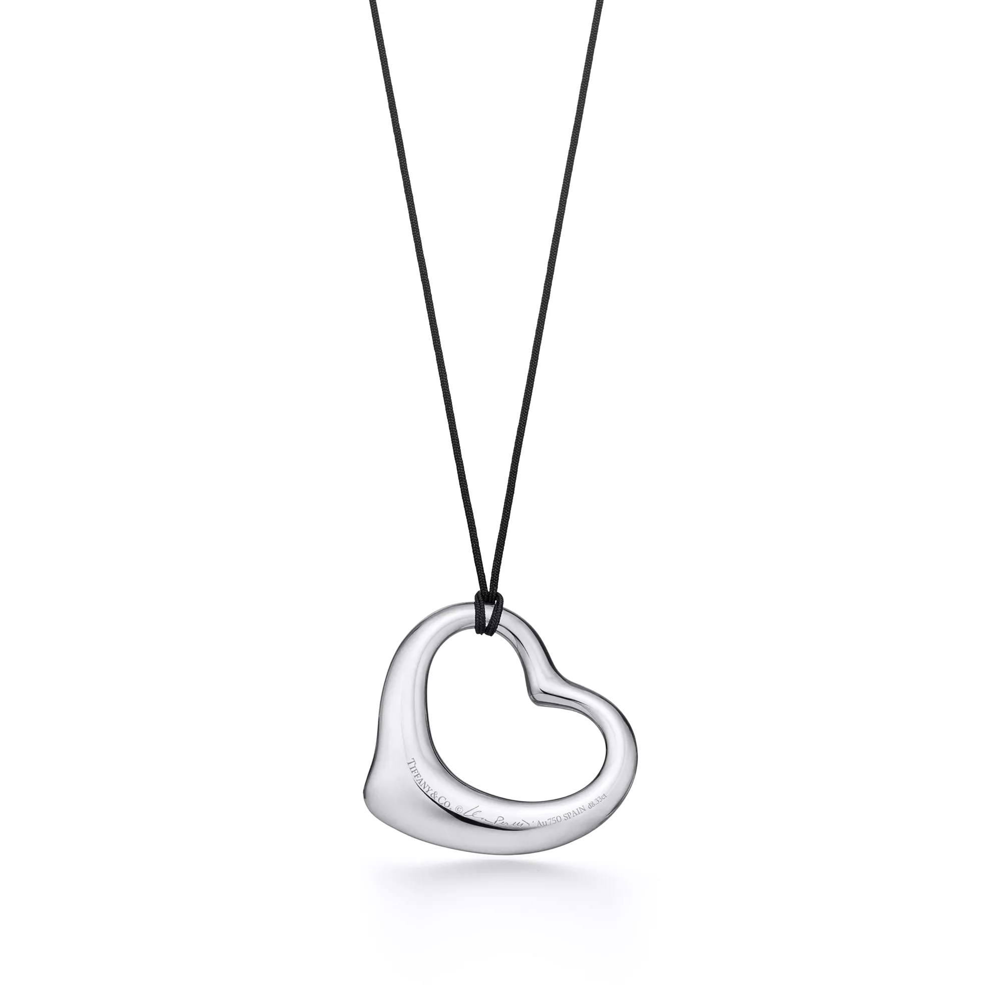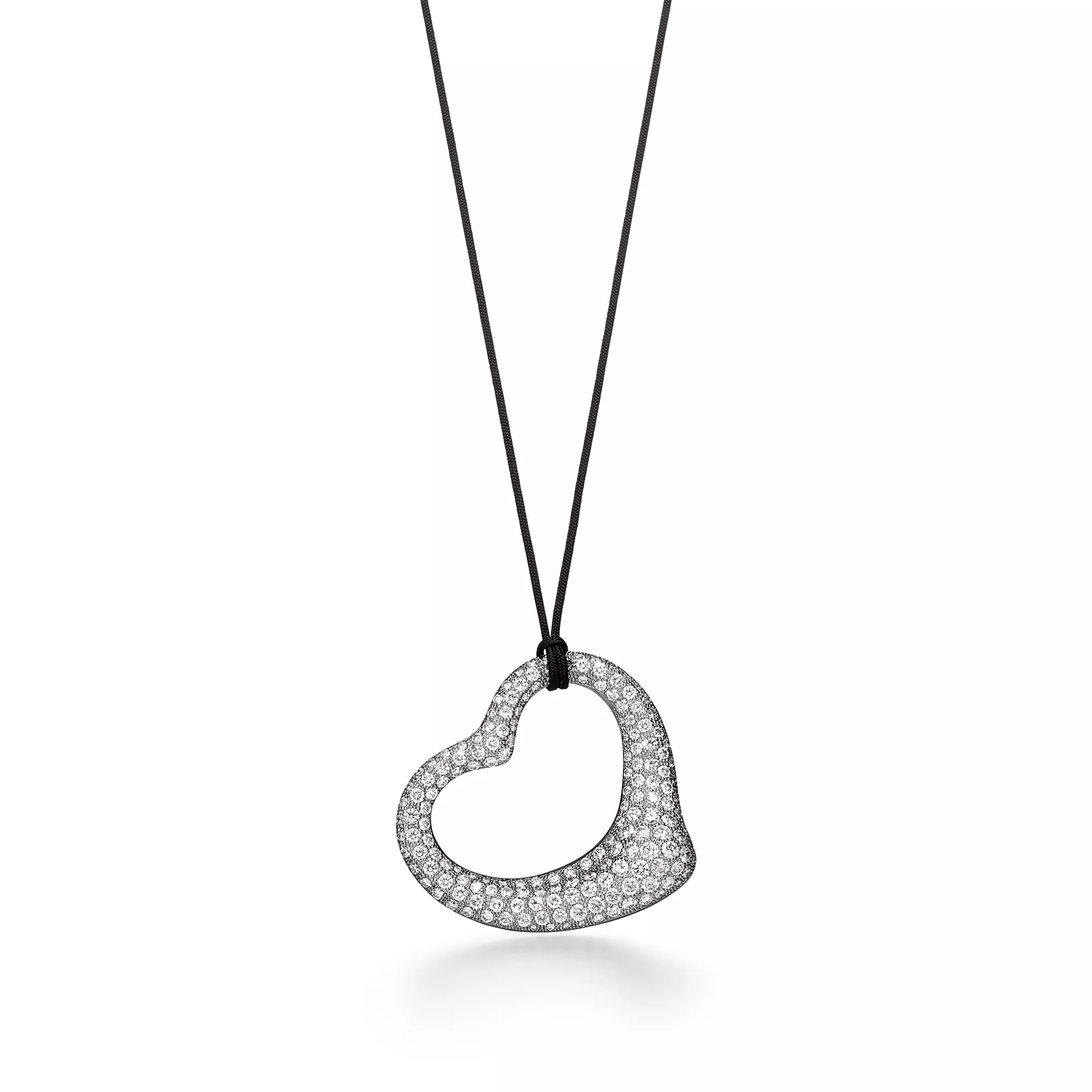Elsa Peretti® Open Heart Pendant in Platinum with Pavé Diamonds and Black Silk