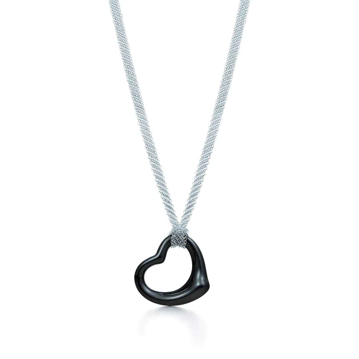 The simple, evocative shape of Elsa Peretti® Open Heart designs are an expression of love's limitless bounds. A testament to Peretti’s affinity for craftsmanship and form, the collection reinterprets the heart shape with an organic and sculptural approach that transcends the sentimentality of this universal symbol. Layer this sterling silver and black nephrite jade piece with pendants of varying lengths or wear as its own statement.