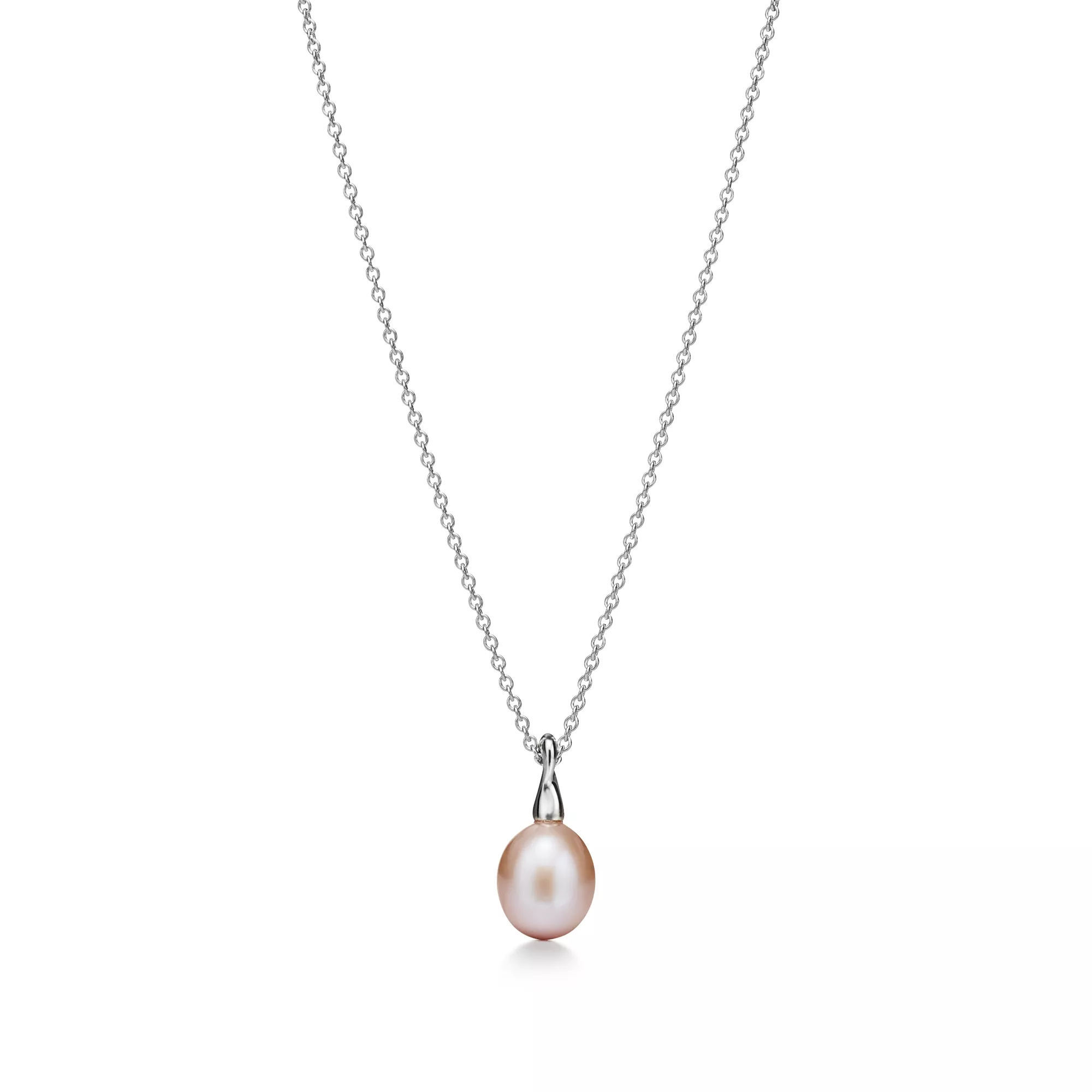 Inspired by the sea. Pendant in sterling silver with a freshwater cultured pearl of lavender hue. 26" long. Pearl, 9-9.5 mm. Original designs copyrighted by the Nando and Elsa Peretti Foundation.