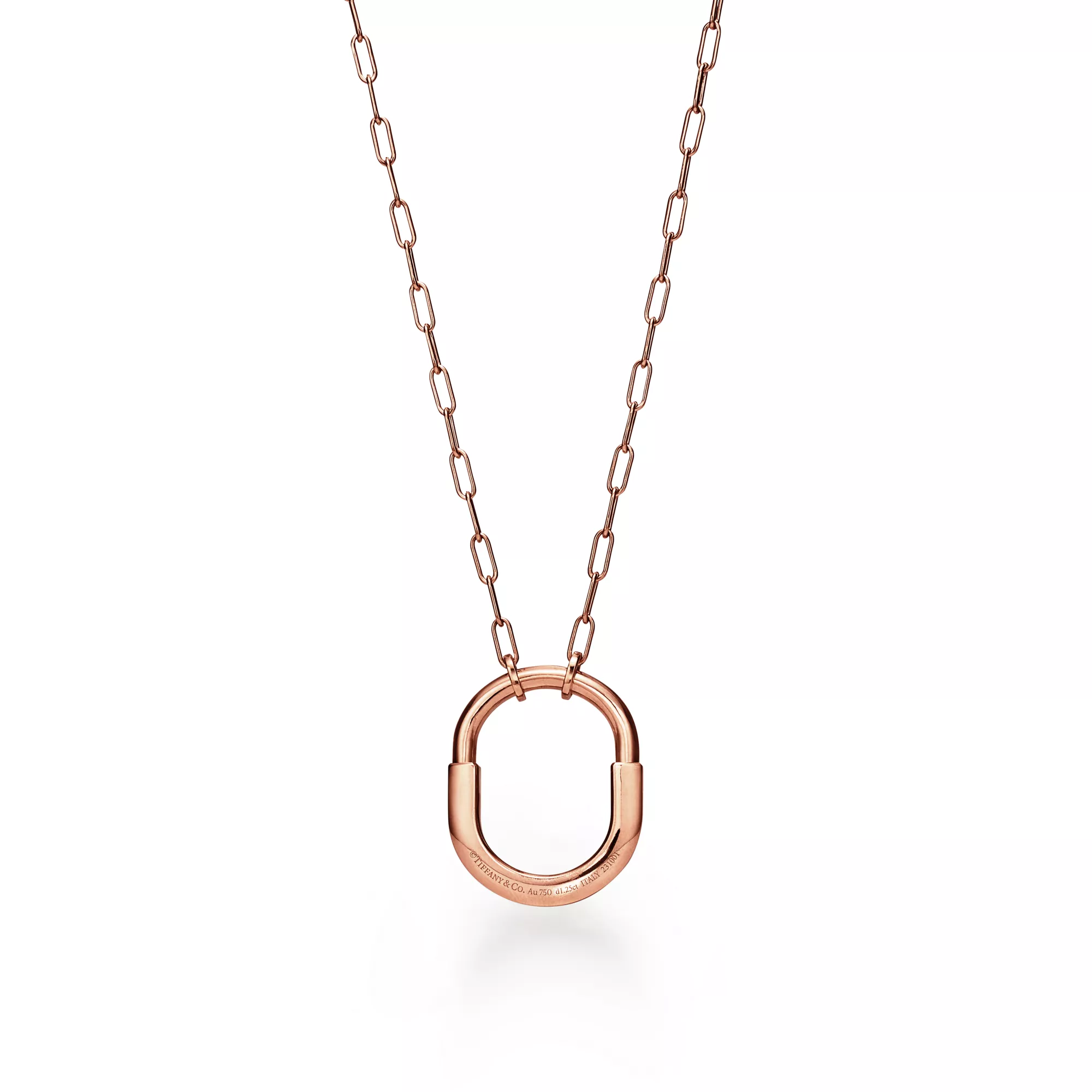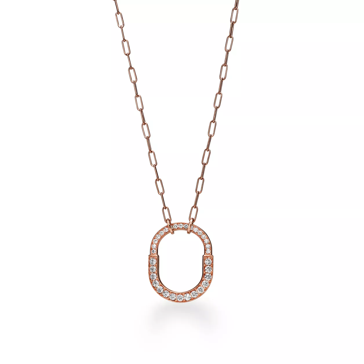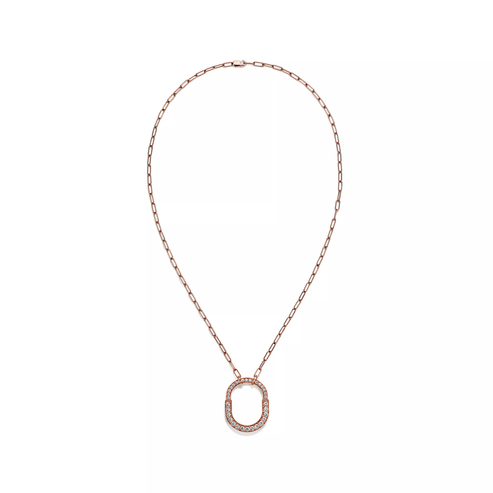 Tiffany Lock Pendant in Rose Gold with Pavé Diamonds, Medium