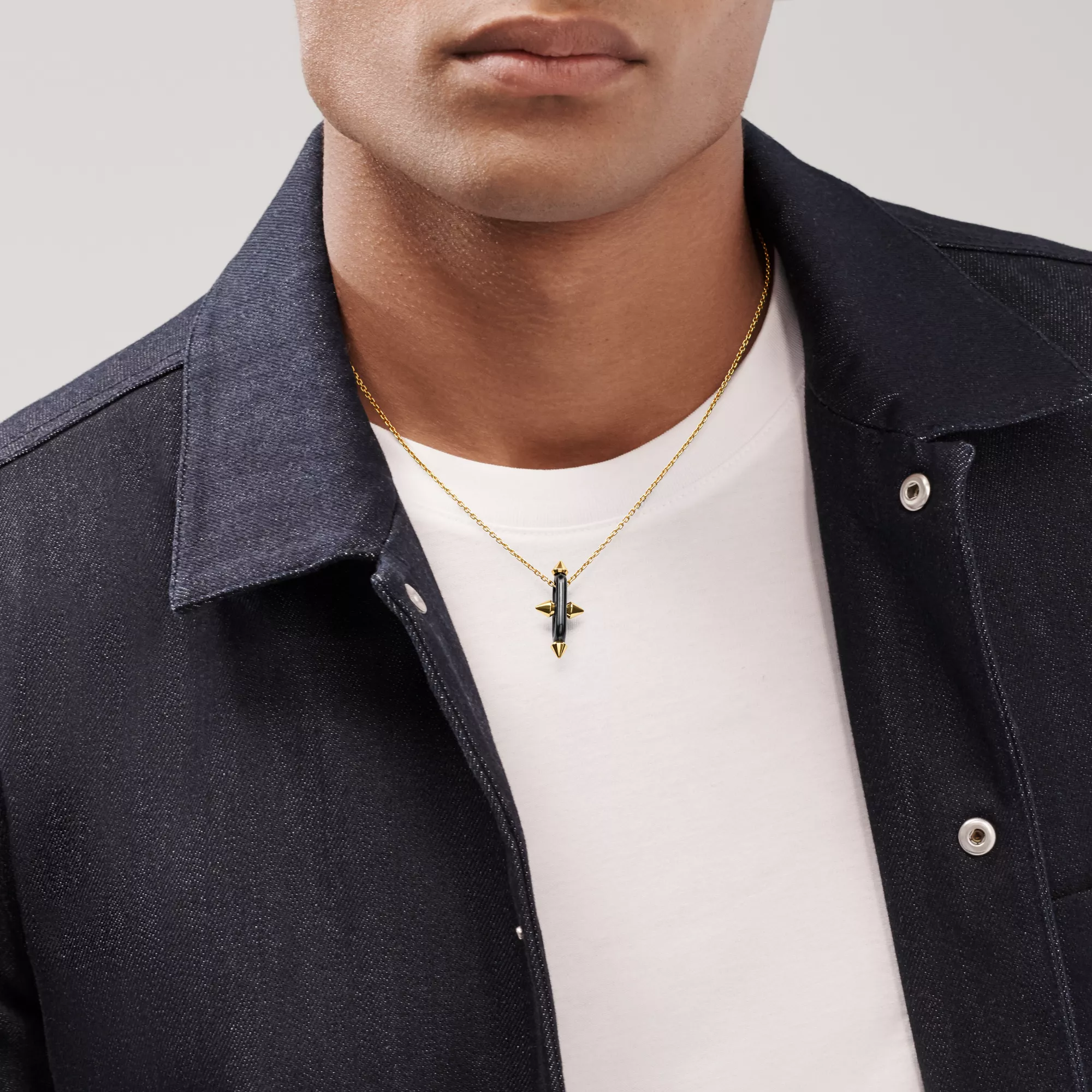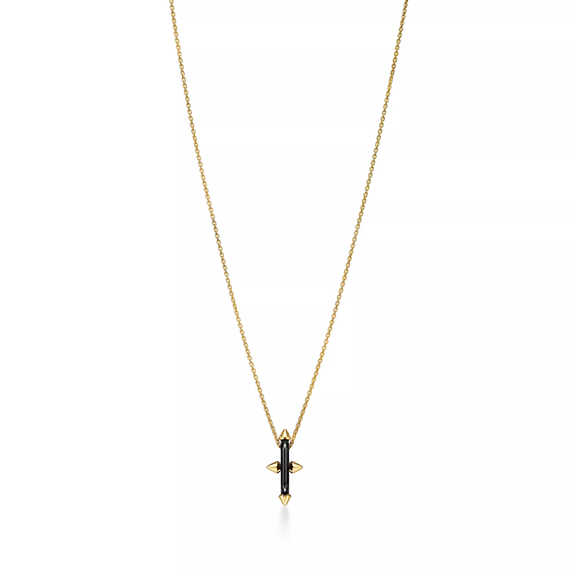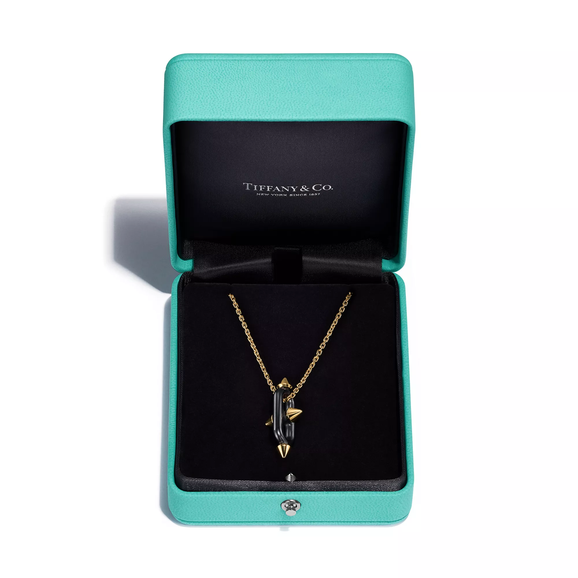 Building on the House’s legacy of collaborating with visionary artists, Tiffany Titan by Pharrell Williams is an expression of rebellion as a catalyst for creativity. These designs draw inspiration from Poseidon and his trident. An angular spear-shaped motif and bold contoured links are crafted from 18k gold and titanium for a striking contrast.