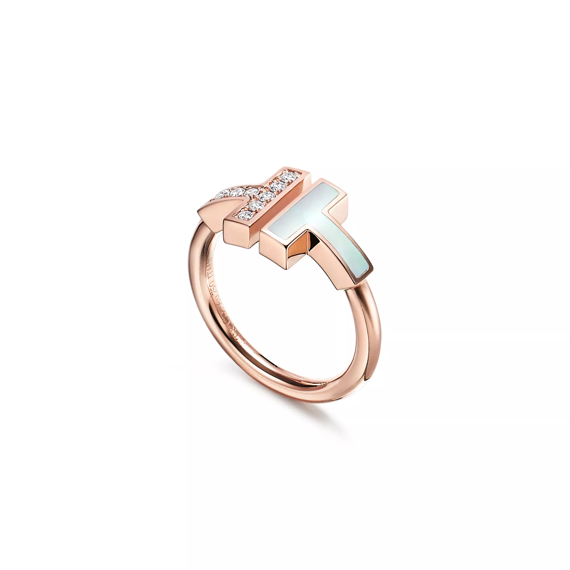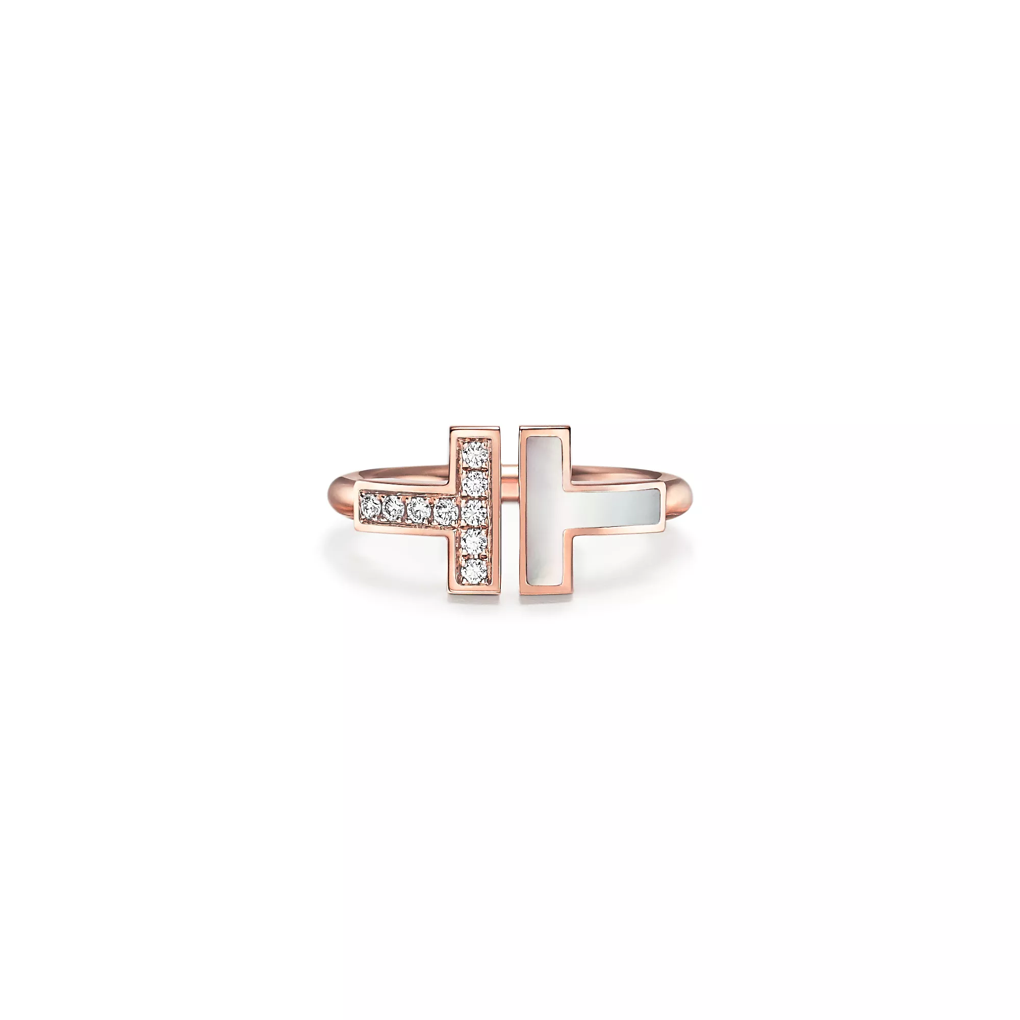 Tiffany T Wire Ring in Rose Gold with Diamonds and Mother-of-pearl